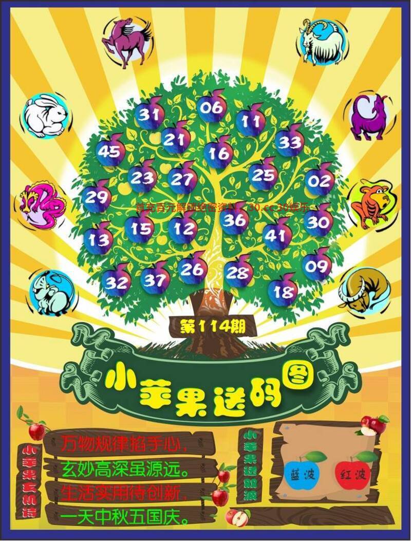 114期:小苹果送码【开兔39】 【解析】万物规律掐手心,玄妙高深虽源远。生活实用待创新,一天中秋五国庆。 综合生肖:羊牛狗兔虎猴 |